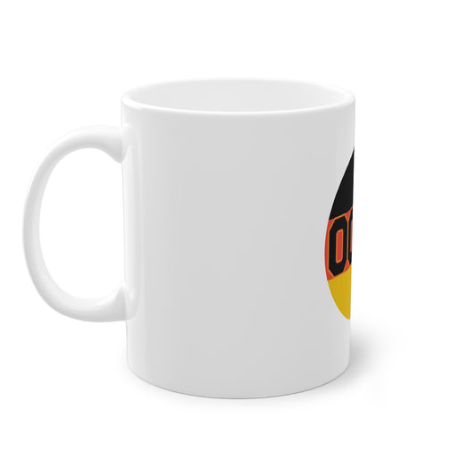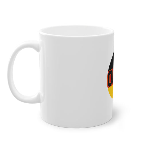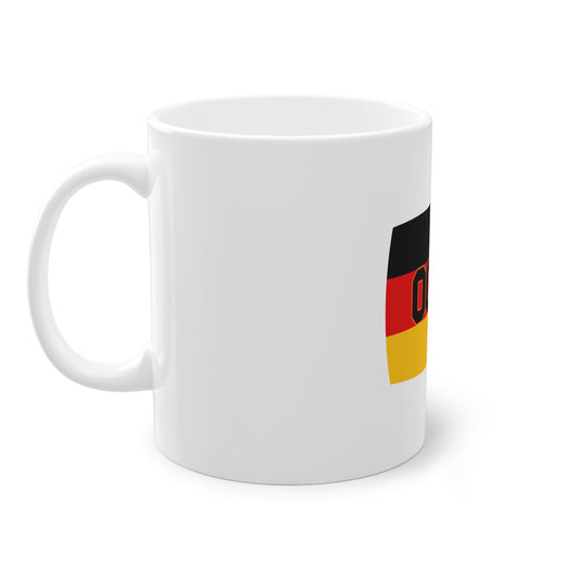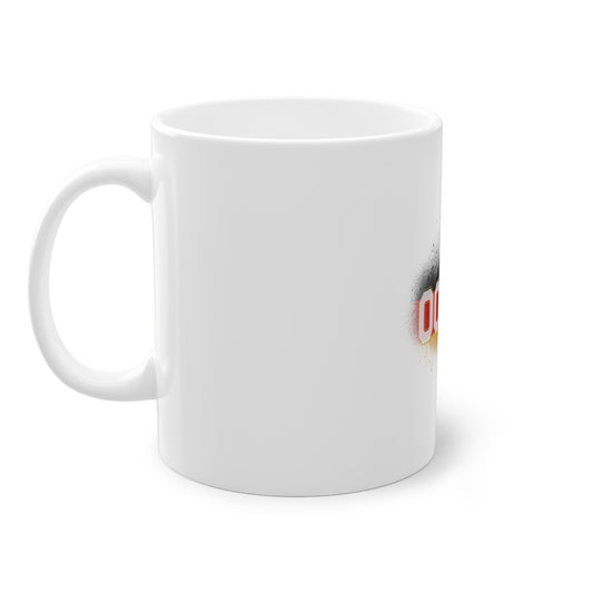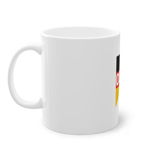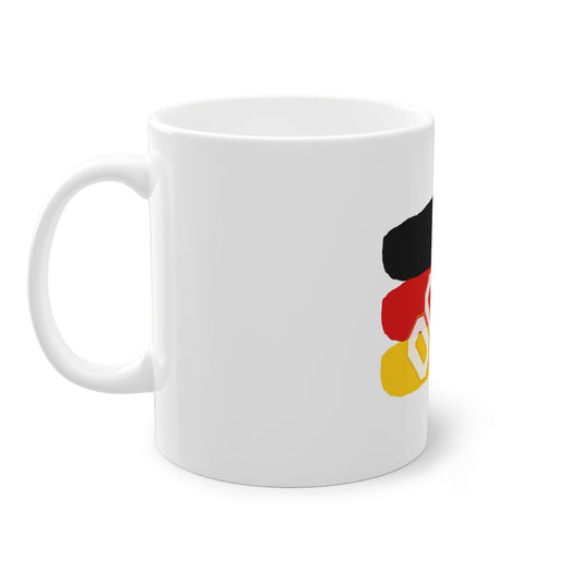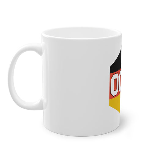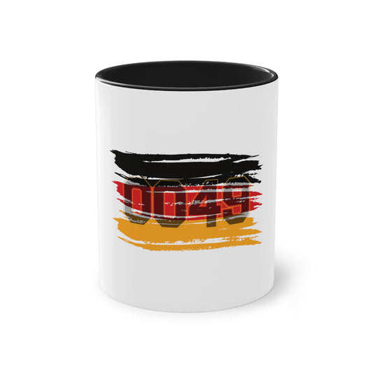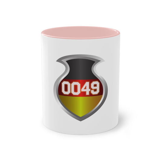 0049 - Internationale Nummer Deutschlands auf Kaffeetassen, Teetassen bedruckt; weißer Außenbereich mit mehrfarbigem Innenbereich und Henkel, große; 11 Unzen