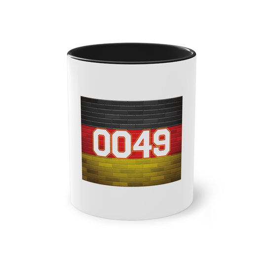 0049 - Internationale Nummer Deutschlands - auf Kaffeetasse, Teetasse bedruckt - Farbe: weiß, Standardtasse, groß 11 Unzen