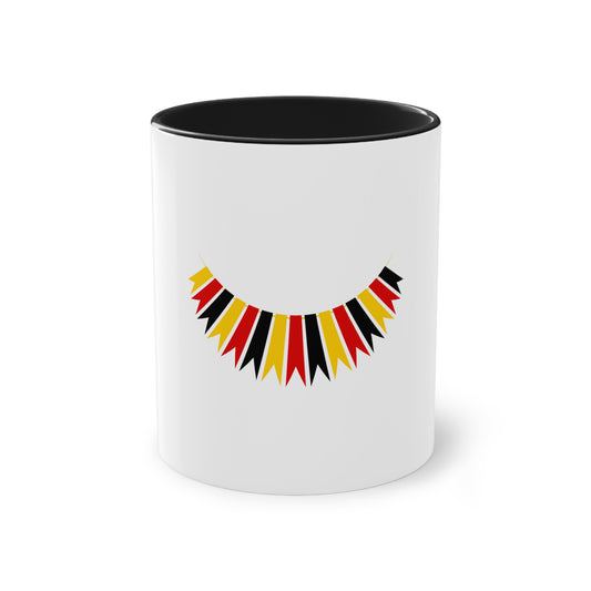 Stolz auf Deutsche Fahne - auf Kaffeetassen, Teetassen bedruckt; weißer Außenbereich mit mehrfarbigem Innenbereich und Henkel, große; 11 Unzen