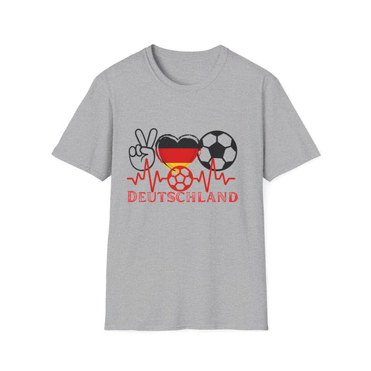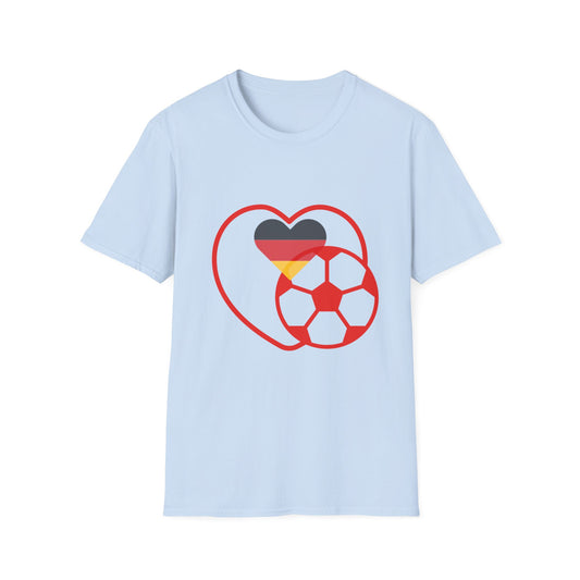 Das Herz und Liebe für Deutschland, Unisex T-Shirt-Motive für Fußballfans, Echte Fanbekleidung, Fantrikot mit Siegen