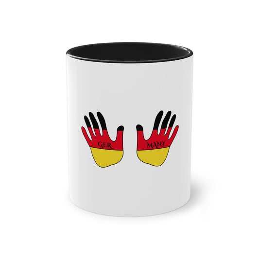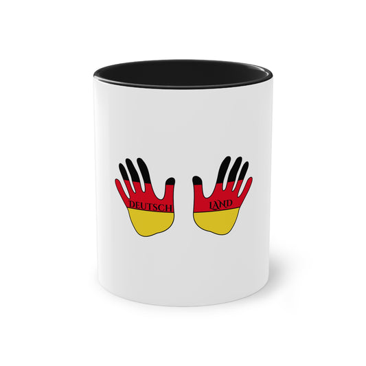 Stolz auf Deutschland - auf Kaffeetassen, Teetassen bedruckt; weißer Außenbereich mit mehrfarbigem Innenbereich und Henkel, große; 11 Unzen