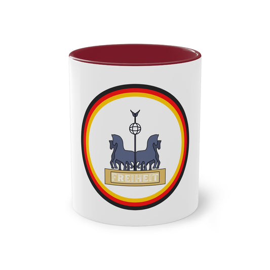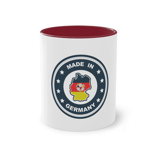 Made in Germany auf Kaffeetassen bedruckt; weißer Außenbereich mit mehrfarbigem Innenbereich und Henkel, große; 11 Unzen