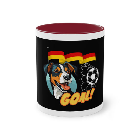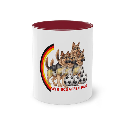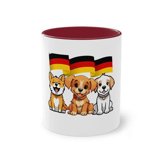 Hundemannschaft für Deutschland auf Kaffeetassen bedruckt; weißer Außenbereich mit mehrfarbigem Innenbereich und Henkel, große; 11 Unzen