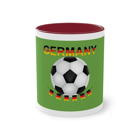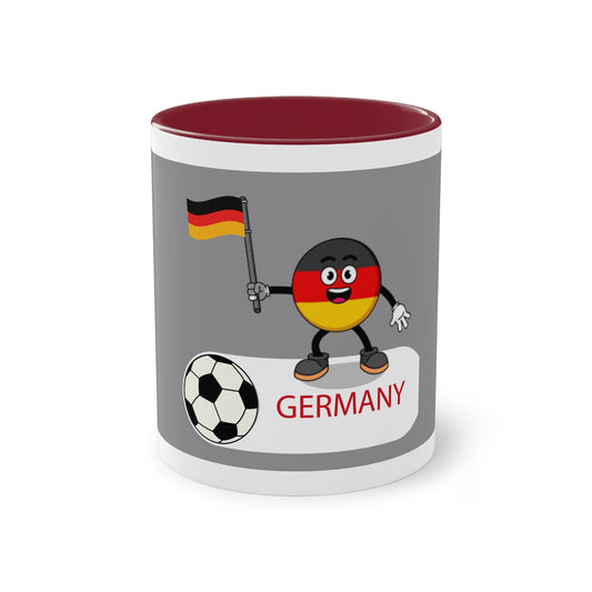 Germany auf Kaffeetassen bedruckt; weißer Außenbereich mit mehrfarbigem Innenbereich und Henkel, große; 11 Unzen