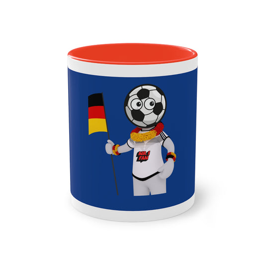 Nummer 1 Fan für Deutschland auf Kaffeetassen bedruckt; weißer Außenbereich mit mehrfarbigem Innenbereich und Henkel, große; 11 Unzen