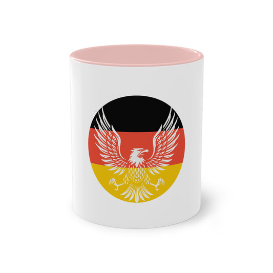 Deutsche Adler - für Frieden, Liebe und Einheit auf Kaffeetassen, Teetassen bedruckt; weißer Außenbereich mit mehrfarbigem Innenbereich und Henkel, große; 11 Unzen