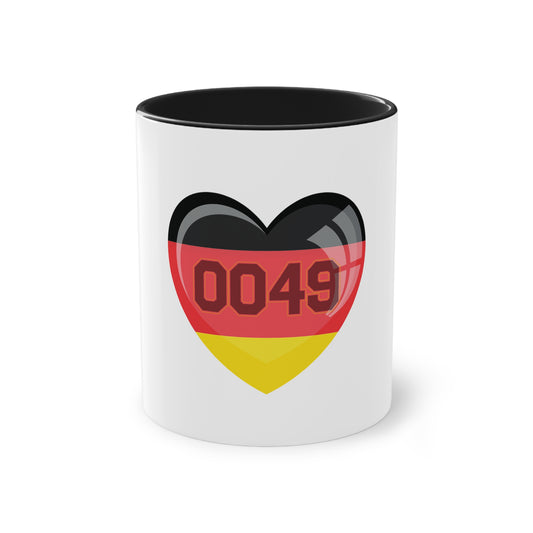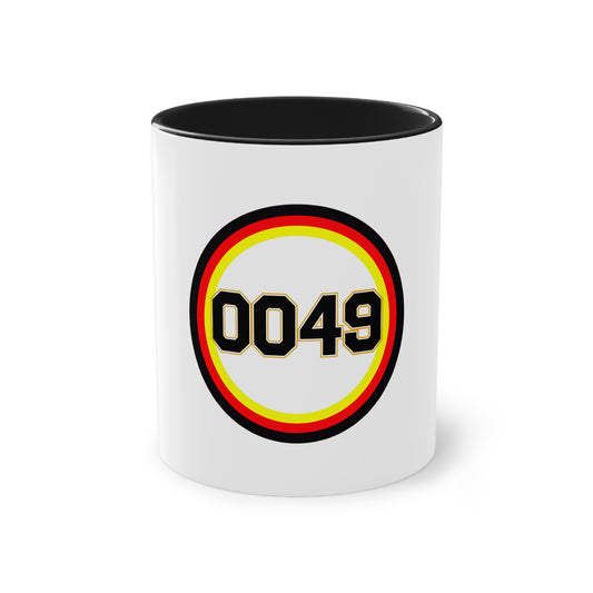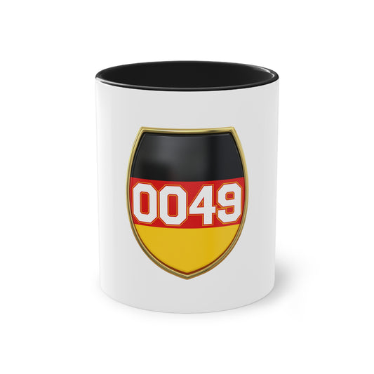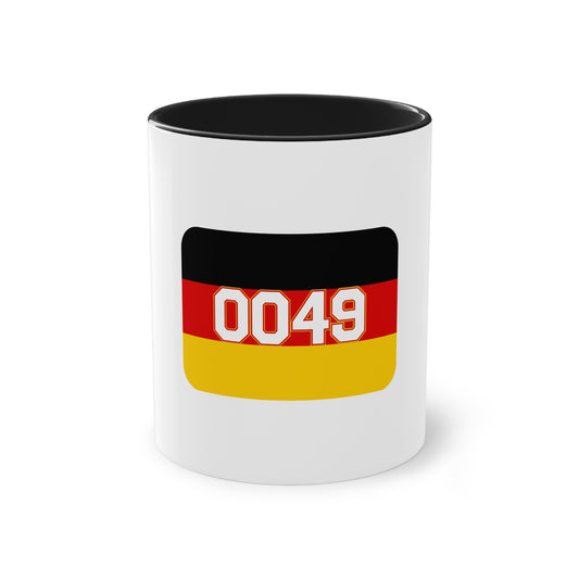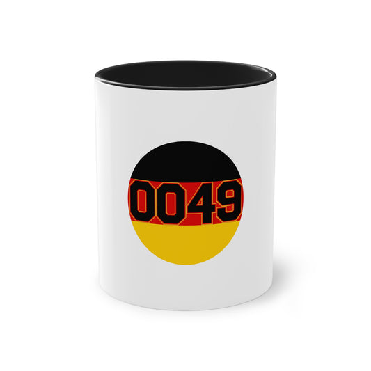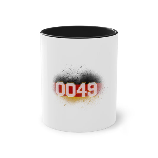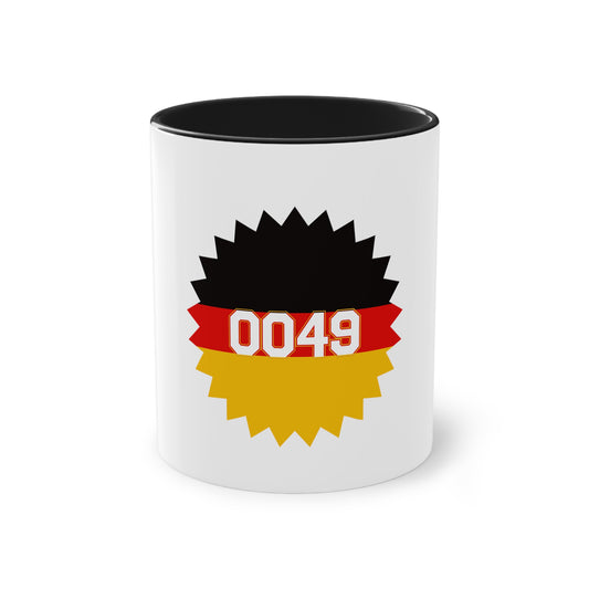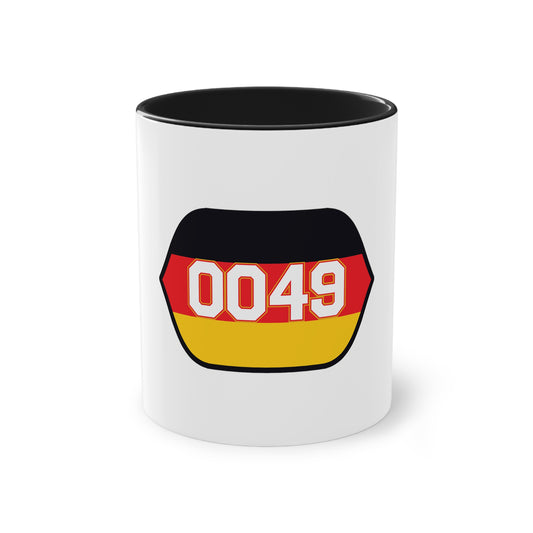 0049 für Deutschland - auf Kaffeetasse, Standardtasse für jeden Tag, Farbe: weiß, groß 11 Unzen, bedruckt