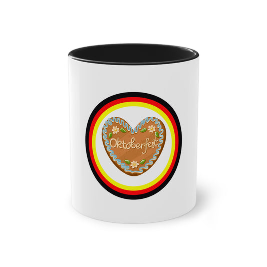 Beerkultur, Oktoberfest-Kaffeetassen; weißer Außenbereich mit mehrfarbigem Innenbereich und Henkel, große; 11 Unzen