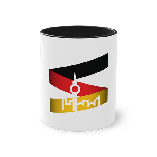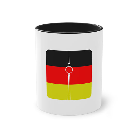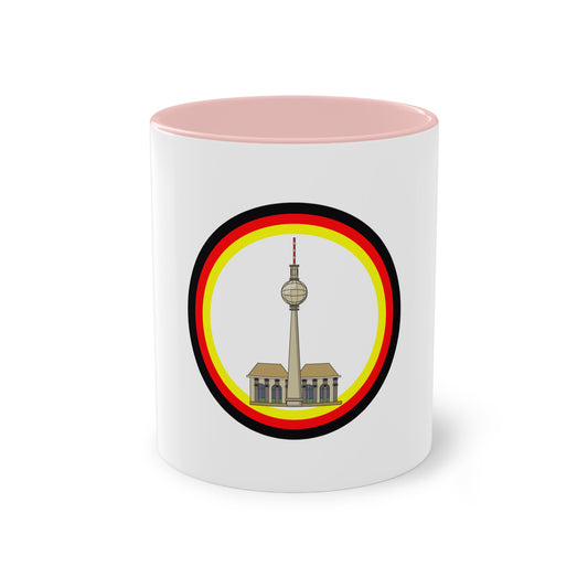 Berliner Fernsehturm auf Kaffeetassen, Teetassen bedruckt; weißer Außenbereich mit mehrfarbigem Innenbereich und Henkel, große; 11 Unzen