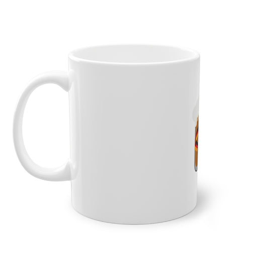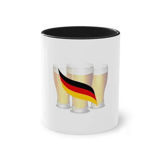 Biergarten-Atmosphäre: Oktoberfest-Kaffeebecher; weißer Außenbereich mit mehrfarbigem Innenbereich und Henkel, große; 11 Unzen