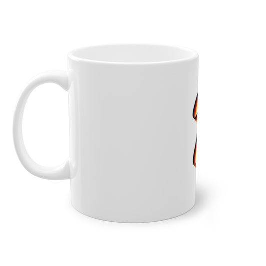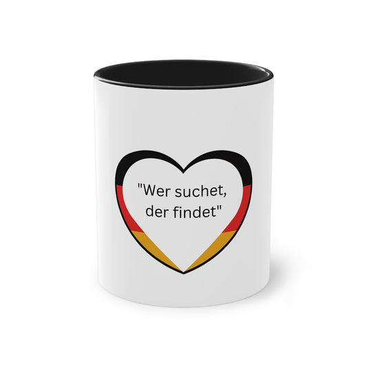 Wer sucht, der findet, weißer Außenbereich mit mehrfarbigem Innenbereich und Henkel, große; 11 Unzen