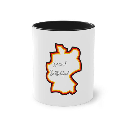 Wir sind Deutschland auf Kaffeetassen, Teetassen bedruckt; weißer Außenbereich mit mehrfarbigem Innenbereich und Henkel, große; 11 Unzen