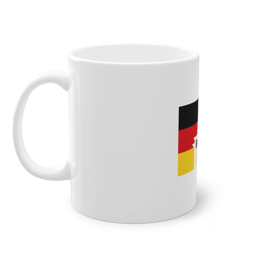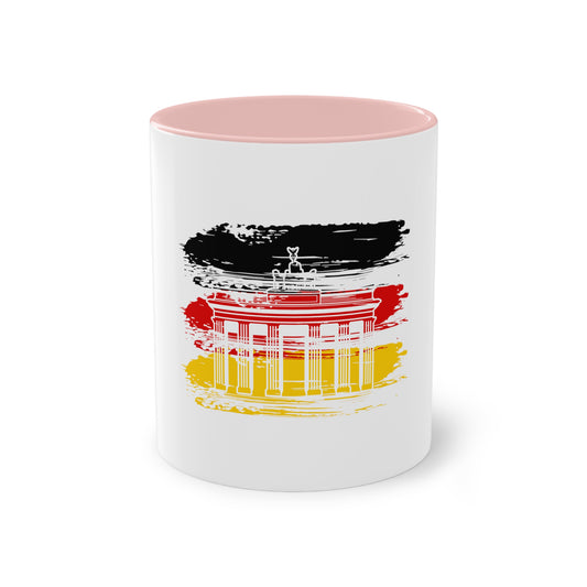 Brandenburg Tor auf Kaffeetassen, Teetassen bedruckt; weißer Außenbereich mit mehrfarbigem Innenbereich und Henkel, große; 11 Unzen.