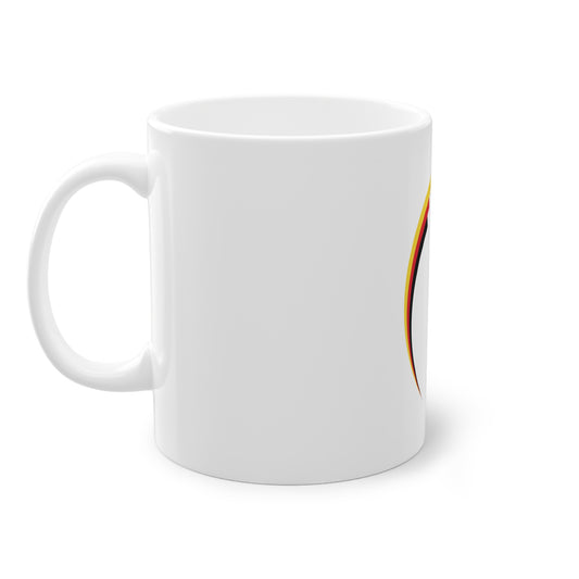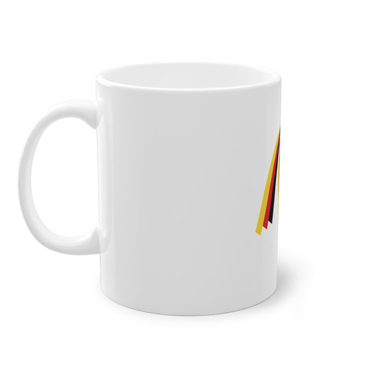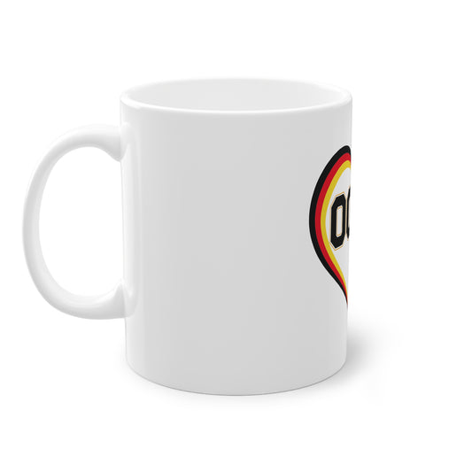 Plus für Deutschland auf Kaffeetassen, Teetassen bedruckt; weißer Außenbereich mit mehrfarbigem Innenbereich und Henkel, große; 11 Unzen