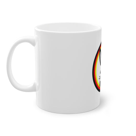 Mion wie eine Katze auf Kaffeetassen, Teetassen bedruckt; weißer Außenbereich mit mehrfarbigem Innenbereich und Henkel, große; 11 Unzen