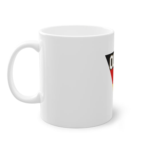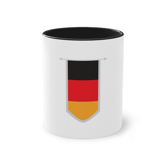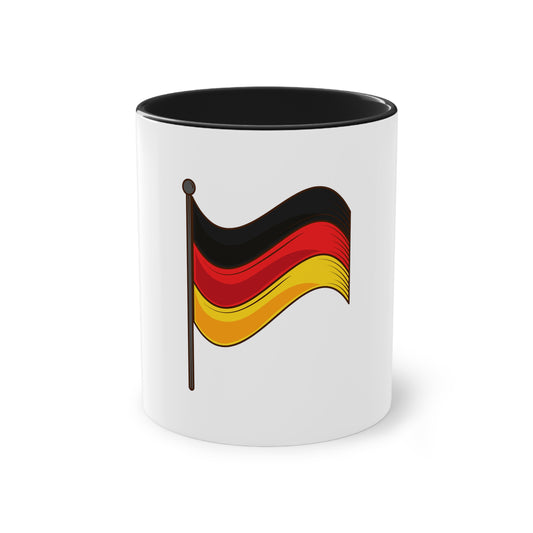 Die Deutsche Fahne auf Kaffeetassen, Teetassen bedruckt; weißer Außenbereich mit mehrfarbigem Innenbereich und Henkel, große; 11 Unzen