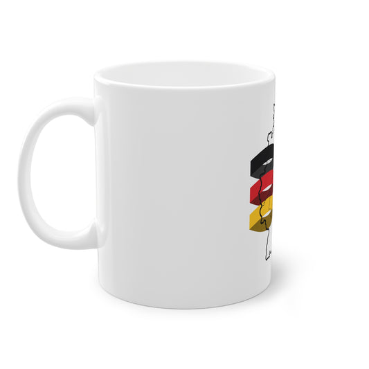 Deutschland mit Style auf Kaffeetassen, Teetassen bedruckt; weißer Außenbereich mit mehrfarbigem Innenbereich und Henkel, große; 11 Unzen