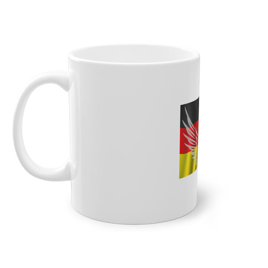 Deutschland auf Kaffeetassen, Teetassen bedruckt; weißer Außenbereich mit mehrfarbigem Innenbereich und Henkel, große; 11 Unzen