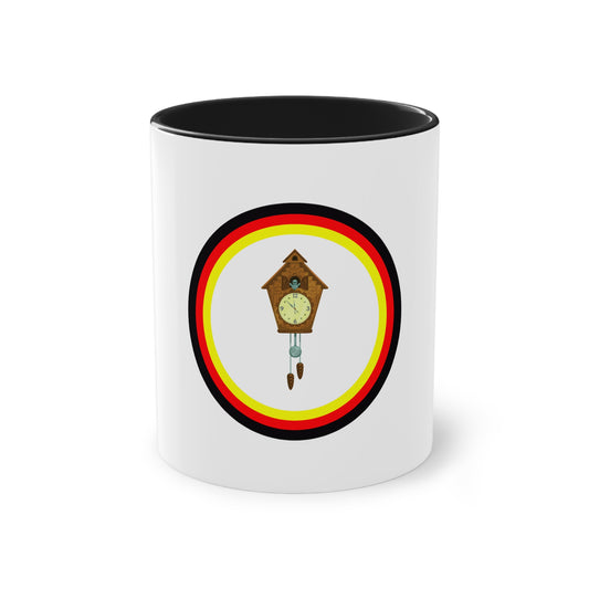 Kaffeetassen mit deutscher Geschichte – Wanduhr - Schwarzwald, Jetzt online kaufen; weißer Außenbereich mit mehrfarbigem Innenbereich und Henkel, große; 11 Unzen