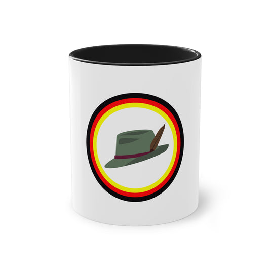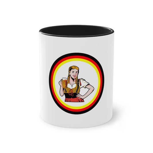 Oktoberfest-Vibes: Deutsche Kaffeetassen; weißer Außenbereich mit mehrfarbigem Innenbereich und Henkel, große; 11 Unzen