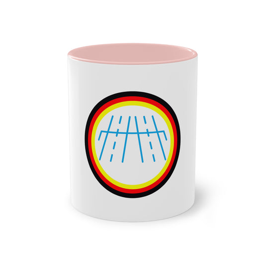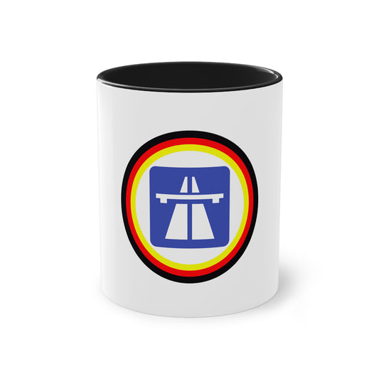 Hochgeschwindigkeitskomfort: Deutsche Autobahn-Tassen; weißer Außenbereich mit mehrfarbigem Innenbereich und Henkel, große; 11 Unzen