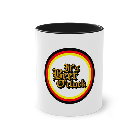 It's beer O'clock: Oktoberfest-Kaffeetassen; weißer Außenbereich mit mehrfarbigem Innenbereich und Henkel, große; 11 Unzen