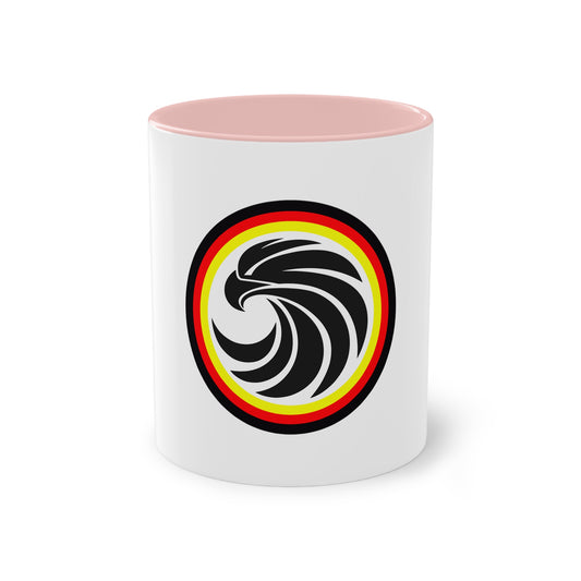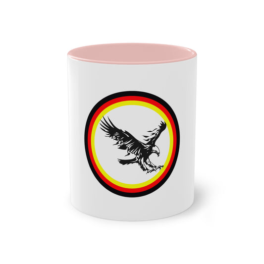 Deutscher fliegende Adler, ein Symbol für Frieden, Liebe und Einheit - auf Kaffeetassen bedruckt; weißer Außenbereich mit mehrfarbigem Innenbereich und Henkel, große; 11 Unzen