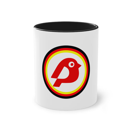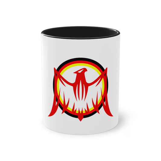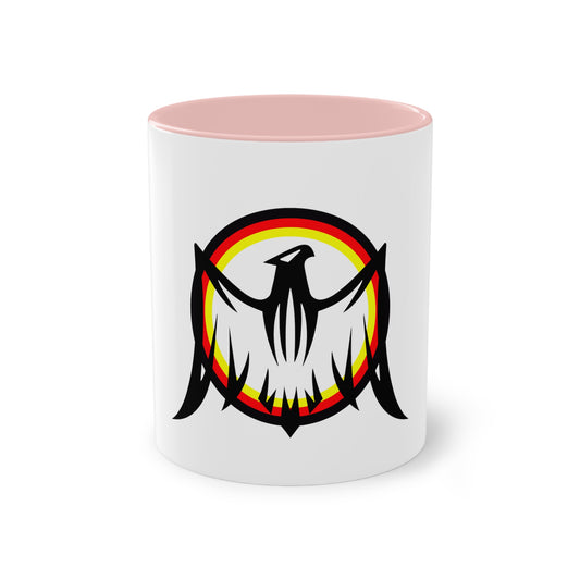 Vögel Symbole für Freiheit, Naturverbundenheit und Tradition auf Kaffeetassen, Teetassen bedruckt; weißer Außenbereich mit mehrfarbigem Innenbereich und Henkel, große; 11 Unzen