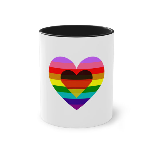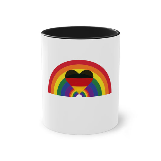 Regenbogen Liebe Deutschland, für Vielfalt, Verständnis und Akzeptanz auf Kaffeetassen bedruckt; weißer Außenbereich mit mehrfarbigem Innenbereich und Henkel, große; 11 Unzen