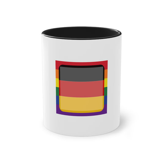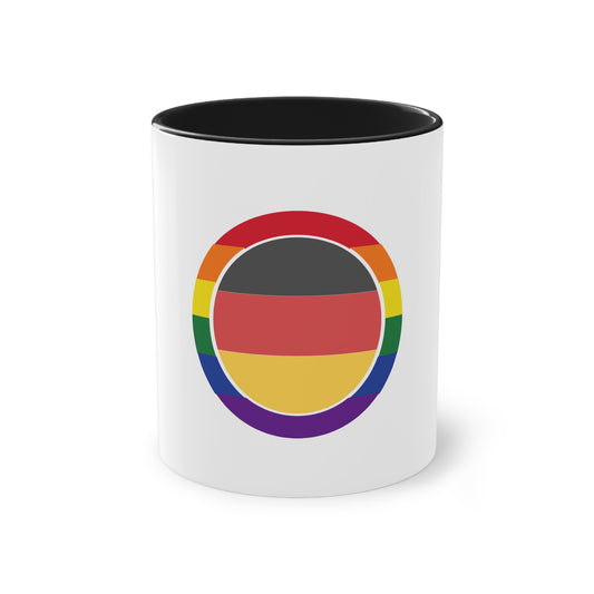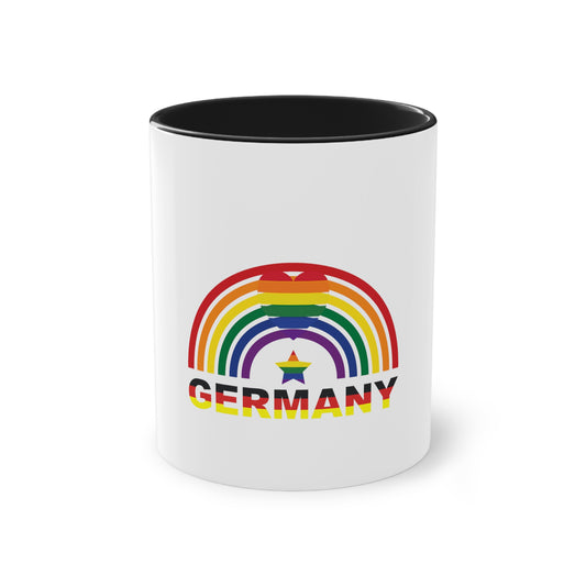 Deutschland Regenbogen Pride Mode, für Vielfalt, Verständnis und Akzeptanz auf Kaffeetassen bedruckt; weißer Außenbereich mit mehrfarbigem Innenbereich und Henkel, große; 11 Unzen