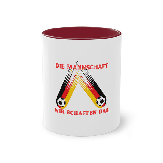 Die Mannschaft auf Mehrfarbige Kaffeetassen, weißer Außenbereich mit mehrfarbigem Innenbereich und Henkel, große; 11 Unzen