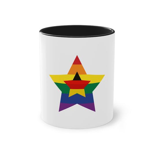 Sternchen für Regenbogen Deutschland, für Vielfalt, Verständnis und Akzeptanz auf Kaffeetassen bedruckt; weißer Außenbereich mit mehrfarbigem Innenbereich und Henkel, große; 11 Unzen