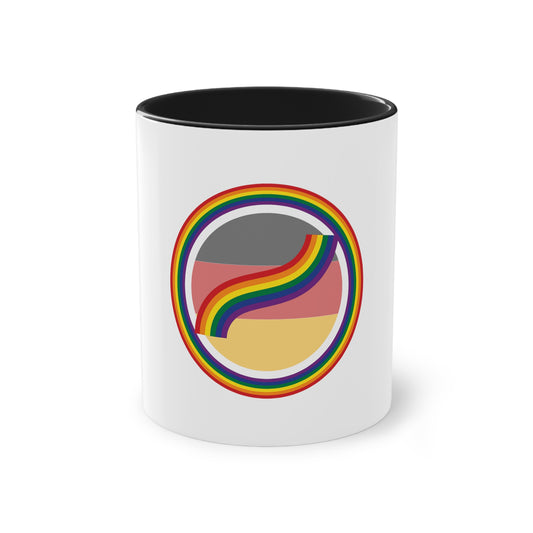 Regenbogen Pride für Deutschland, für Vielfalt, Verständnis und Akzeptanz auf Kaffeetassen bedruckt; weißer Außenbereich mit mehrfarbigem Innenbereich und Henkel, große; 11 Unzen