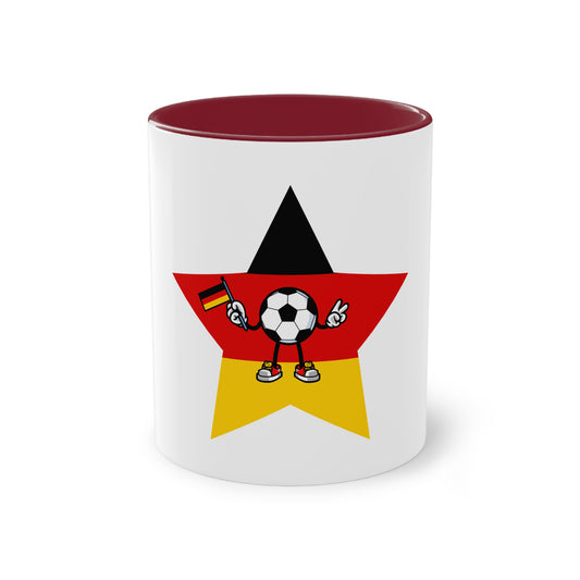 Sternchen für Deutschland auf Mehrfarbige Kaffeetassen bedruckt; weißer Außenbereich mit mehrfarbigem Innenbereich und Henkel, große; 11 Unzen