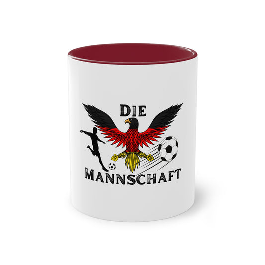 Die Mannschaft auf Mehrfarbige Kaffeetassen, weißer Außenbereich mit mehrfarbigem Innenbereich und Henkel, große; 11 Unzen