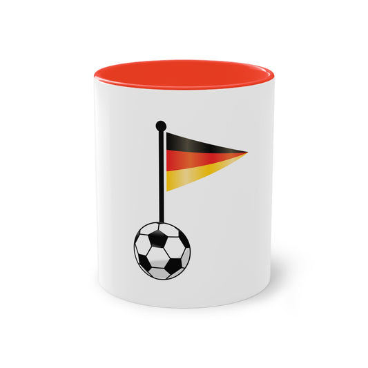 Immer weiter für Deutschland - spielen auf Kaffeetassen bedruckt; weißer Außenbereich mit mehrfarbigem Innenbereich und Henkel, große; 11 Unzen