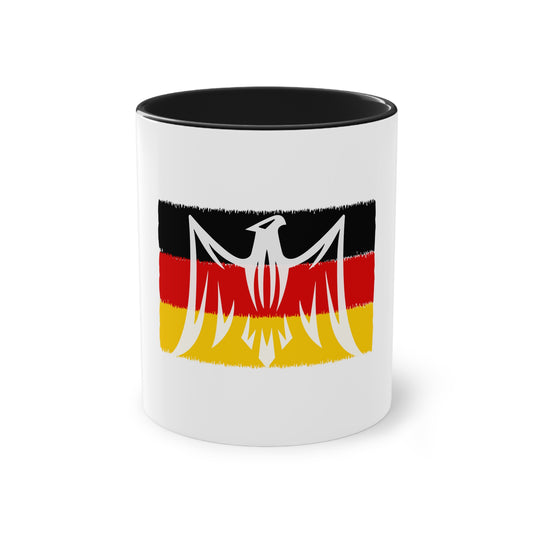 Deutsche Adler - für Frieden, Liebe und Einheit auf Kaffeetassen, Teetassen bedruckt; weißer Außenbereich mit mehrfarbigem Innenbereich und Henkel, große; 11 Unzen
