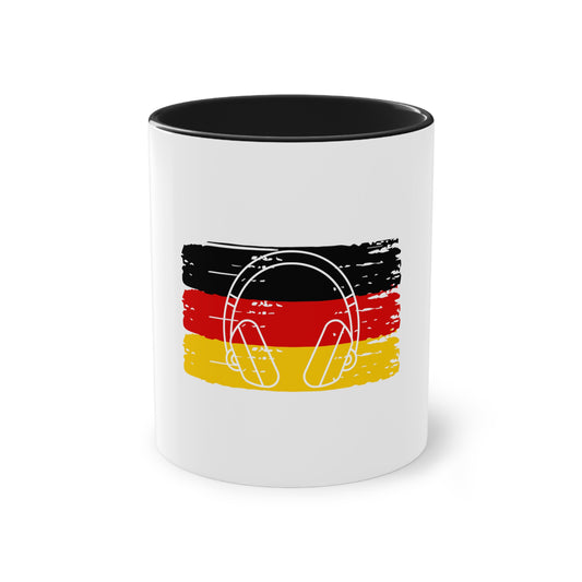 Deutschland, ein Land der Musik auf Kaffeetassen, Teetassen bedruckt; weißer Außenbereich mit mehrfarbigem Innenbereich und Henkel, große; 11 Unzen.