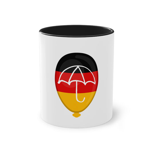 Deutscher Regenschirm schutz auf Kaffeetassen, Teetassen bedruckt; weißer Außenbereich mit mehrfarbigem Innenbereich und Henkel, große; 11 Unzen