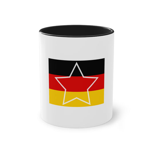 Sterne für Deutschland auf Kaffeetassen, Teetassen bedruckt; weißer Außenbereich mit mehrfarbigem Innenbereich und Henkel, große; 11 Unzen