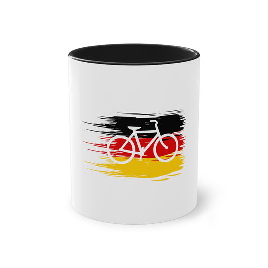 Fahrradland, Deutschland auf Kaffeetassen, Teetassen bedruckt; weißer Außenbereich mit mehrfarbigem Innenbereich und Henkel, große; 11 Unzen