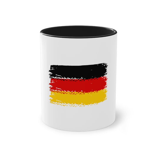 Stolz auf Deutschland - auf Kaffeetassen, Teetassen bedruckt; weißer Außenbereich mit mehrfarbigem Innenbereich und Henkel, große; 11 Unzen