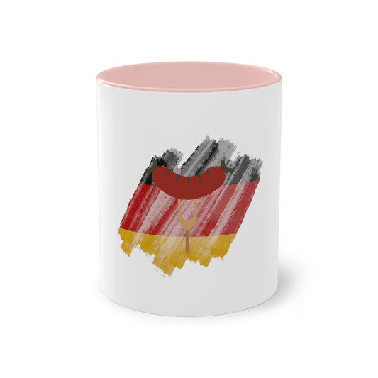 Deutschland Grillland auf Kaffeetassen, Teetassen bedruckt; weißer Außenbereich mit mehrfarbigem Innenbereich und Henkel, große; 11 Unzen