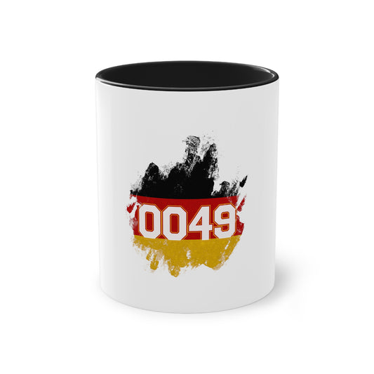 Deutsche 0049 - Internationale Nummer Deutschlands auf Kaffeetassen, Teetassen bedruckt; weißer Außenbereich mit mehrfarbigem Innenbereich und Henkel, große; 11 Unzen