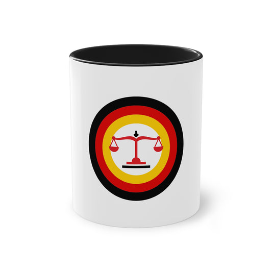 Deutsche Gerechtigkeit Kaffeetassen, Teetassen bedruckt; weißer Außenbereich mit mehrfarbigem Innenbereich und Henkel, große; 11 Unzen