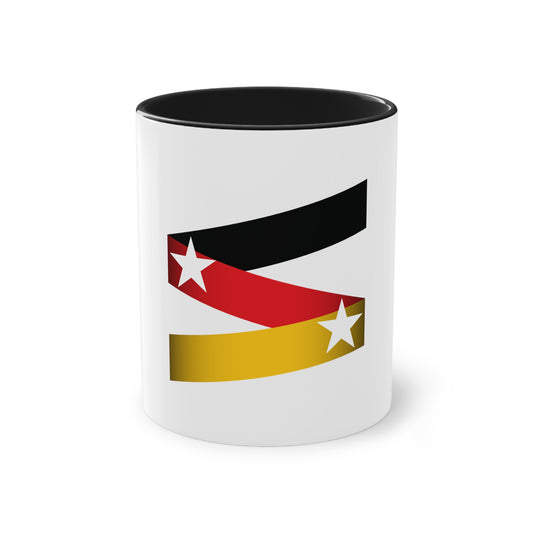 Sternchen für Deutschland auf Kaffeetassen, Teetassen bedruckt; weißer Außenbereich mit mehrfarbigem Innenbereich und Henkel, große; 11 Unzen
