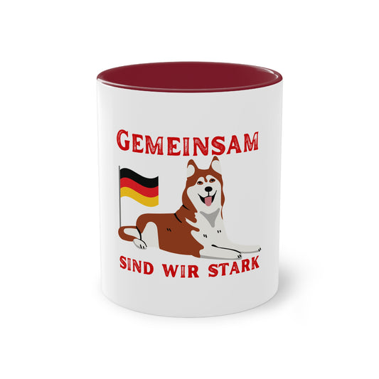 Deutschland - Gemeinsam sind wir stark auf Kaffeetassen bedruckt; weißer Außenbereich mit mehrfarbigem Innenbereich und Henkel, große; 11 Unzen
