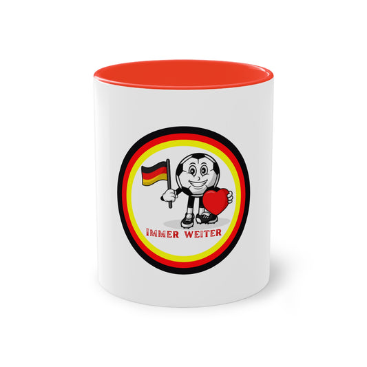 Immer weiter für Deutschland auf Mehrfarbige Kaffeetassen bedruckt; weißer Außenbereich mit mehrfarbigem Innenbereich und Henkel, große; 11 Unzen