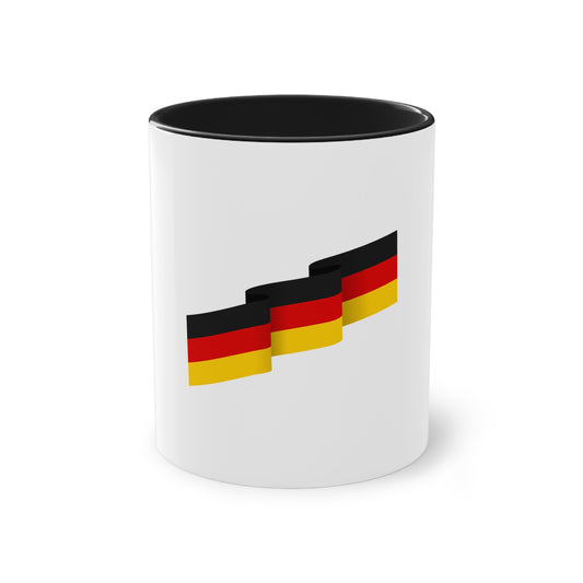 Ich liebe Deutschland auf Kaffeetassen, Teetassen bedruckt; weißer Außenbereich mit mehrfarbigem Innenbereich und Henkel, große; 11 Unzen