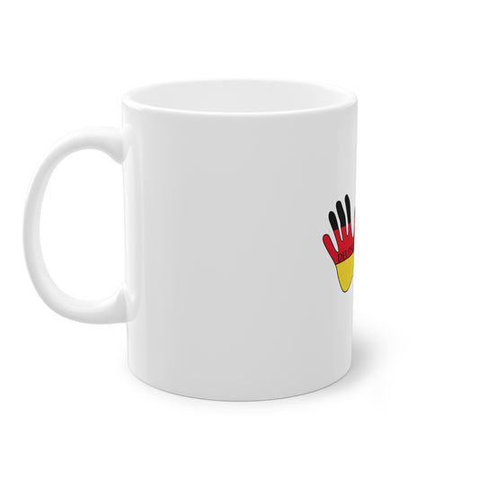 Hey! Deutschlands auf Kaffeetassen bedruckt - Farbe: weiß, Standardtasse, groß 11 Unzen